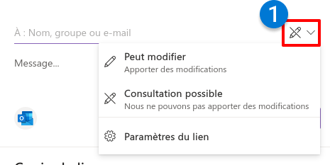 ⚠️ Attention : le lien que vous copiez ne peut être ouvert que par les destinataires que vous venez de saisir. Si un destinataire n'a pas été renseigné, il ne pourra pas ouvrir ce fichier ou ce dossier partagé à partir du lien.